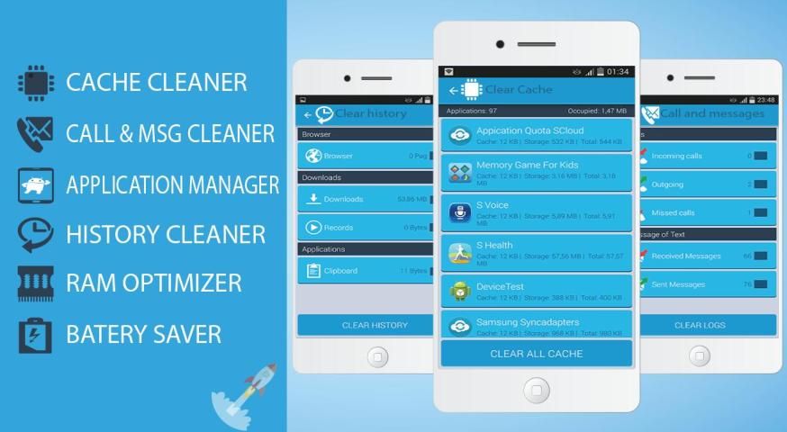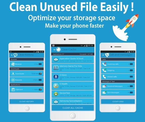 Clean out junk files in phone and let your phone or tablet breath by enabling you to delete junk files such as cache files and download history and unwanted phone calls and messages, Free up storage and optimize performance and more.