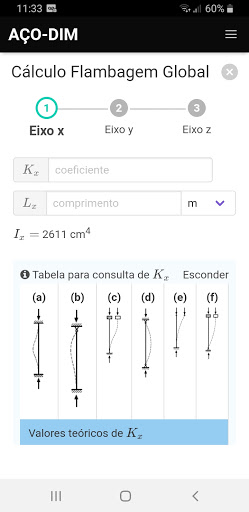 * Determinação do Coeficiente Flambagem local e global.