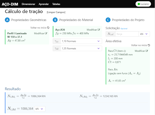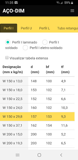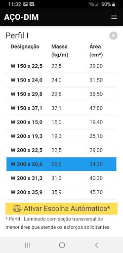 * Dimensiona diversos perfis de estrutura metálica.
