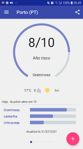 A aplicação ajuda a identificar os pólenes a que é potencialmente mais sensível.