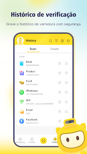 Um registro de todos os códigos QR digitalizados e criados é salvo permanentemente, e a lista de histórico facilita o gerenciamento e a limpeza do histórico de locais visitados e links de códigos QR.