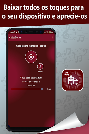 Agora você está na Play Store disponível para baixar nosso novo aplicativo toques de ambulancia gratuito. Faça o download agora e aproveite todo o conteúdo. Possui uma excelente coleção de toques, basta escolher seu toque favorito e personalizá-lo no seu dispositivo Android para usá-los como toques, tons de SMS, alarmes ou notificações.