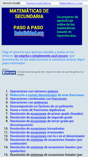 Colecção de exercícios de matemáticas resolvidos passo a passo e com enlaces entre eles para aclarar as dúvidas que vão surgindo. Em espanhol.