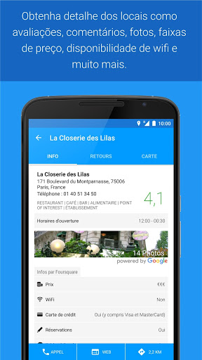 4. Checar avaliações de usuários, rotas, números de telefone, horários de abertura, faixas de preços, fotos e muito mais.