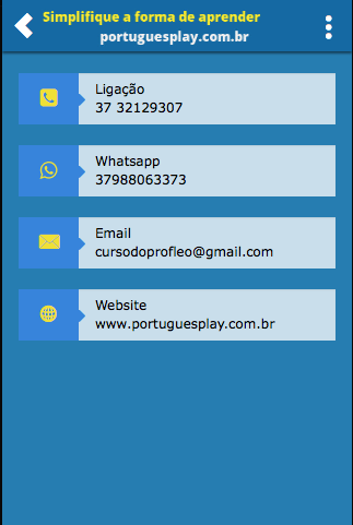 Você poderá adicionar o whatsApp do Professor Leo e tirar suas dúvidas diretamente com ele. Há ainda nosso telefone no site e nosso email no aplicativo para que você tenha todo suporte na língua portuguesa.