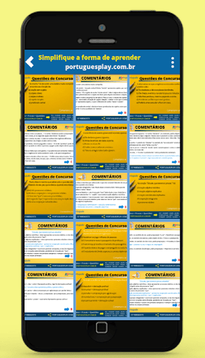 O app Português para Concursos é direcionado para estudantes e concurseiros. Há vários recursos no aplicativo: resumões coloridos, dicas e macetes, cupom de desconto, videoaulas, simulados e muito mais.