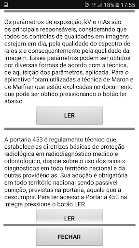 O aplicativo traz ainda, alguns documentos relacionados ao tema do aplicativo para aprimorar os procedimentos realizados pelos profissionais da área para aquisição de imagens radiográficas.