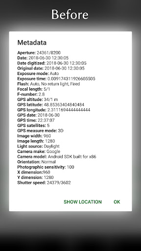 Ajuda a proteger sua privacidade removendo o Exif Metadados de fotos antes de fazer o upload / compartilhá-los.