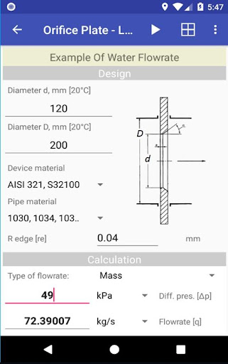- Dispositivos primários para medição de fluxo.Cálculo da pressão diferencial no dispositivo primário, dependendo da taxa de fluxo da substância e vice -versa.Baseia-se nos padrões GOST 8.586.1-5-2005 e ISO-5167.Cálculo da área, volume e superfície de diferentes formas geométricas.