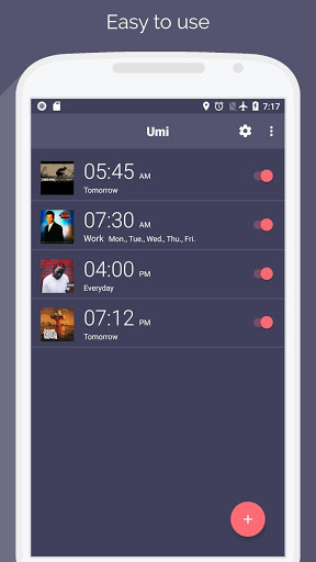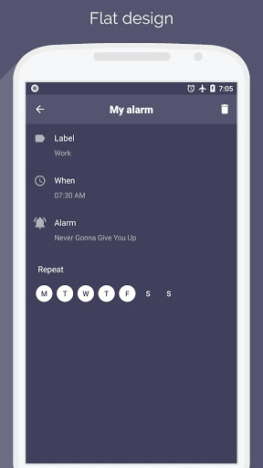 Simply create an alarm, pick a song from your phone and enjoy your favorite music every time you need to wake up!