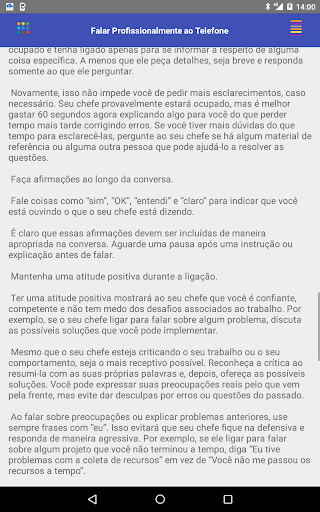 Business Phone Calls é a melhor ferramenta para quem deseja melhorar suas habilidades de comunicação por telefone e maximizar o desempenho de seus negócios. Este aplicativo funciona como um livro conciso, oferecendo conselhos acionáveis e dicas práticas para ajudá-lo a aproveitar ao máximo suas ligações comerciais.