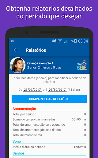 O Meu Bebê também gera relatórios contendo informações importantes, e você pode selecionar o período que desejar.