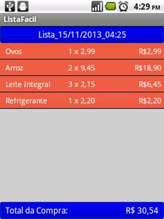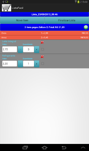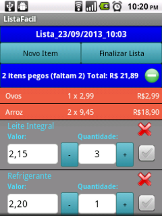 Com a lista pronta, basta ir inserindo o valor e a quantidade de cada item e marcar o checkbox do lado direito de cada um, e, à medida que você faz isso, o aplicativo vai lhe mostrando o valor total dos itens já marcados. Uma vez que você colocou preço e quantidade em todos os itens e marcou os checkboxes correspondentes você chega no caixa do supermercado já sabendo qual o preço total de sua compra sem complicações.