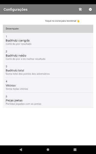 Critérios de desempate configuráveis: