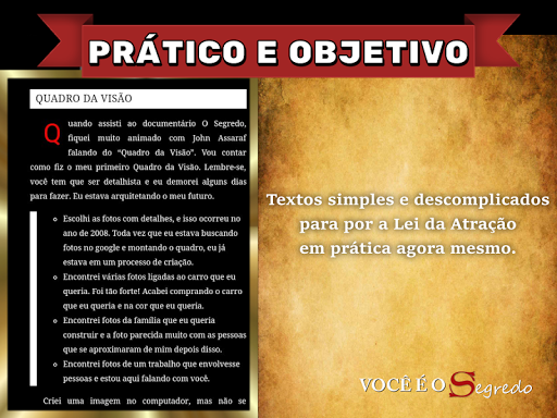 Inspirado em livros como A Lei da Atração e O Segredo, você pode levar em seu bolso um manual de técnicas para aplicar em sua vida pessoal e profissional.