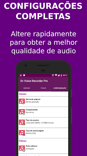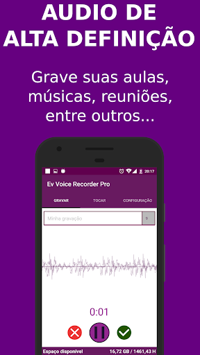 O Gravador de Voz Ev é um gravador de voz avançado, com vários recursos para você conseguir a melhor qualidade de áudio.