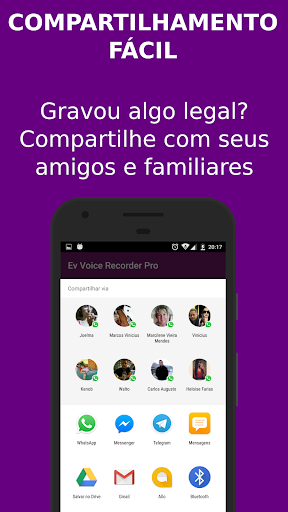 Gravou algo legal e quer compartilhar? Não tem problema. O aplicativo conta com opção de compartilhamento fácil e rápido para você enviar suas gravações para os seus amigos e familiares.