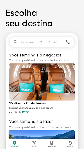 A Flapper é a primeira plataforma de aviação executiva sob demanda. O aplicativo une mais de 800 aeronaves, incluindo jatos, turbo-hélices e helicópteros, para oferecer uma experiência de voo privado revolucionária.