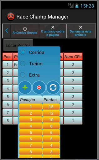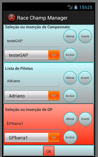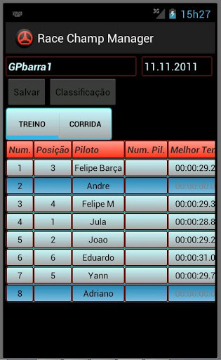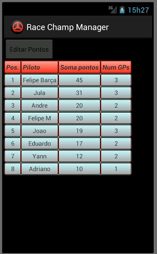 P.S. O app foi feito como um sistema de cadastro para que o usuário entre com os dados dos resultados das corridas e a partir deles gerencie um campeonato por pontos. Não é jogo, e nem gerenciador sincronizado com web ou que faz tudo automático