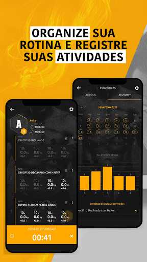 Tenha acesso a um catálogo de mais de 650 exercícios físicos fitness e exercícios de musculação em casa, além de treinos de academia demonstrados através de vídeos e textos. Monte seu treino personalizado configurando séries, repetições, cargas utilizadas e tempo de descanso entre eles.