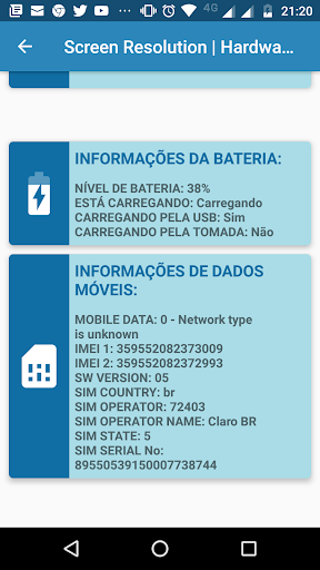 Com esse aplicativo você poderá coletar várias informações relativas à seu dispositivo: