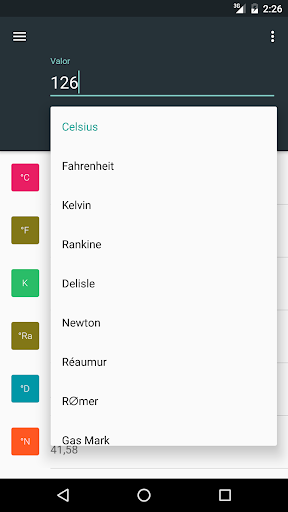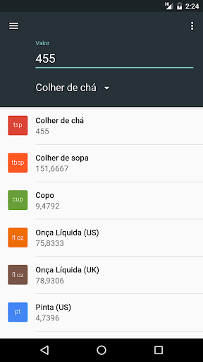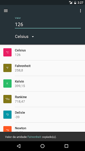 Para copiar o valor da unidade convertida, segure-o pressionado na lista.