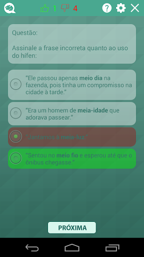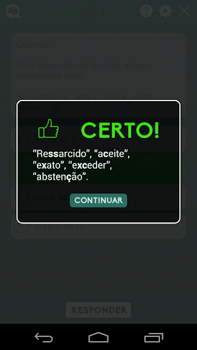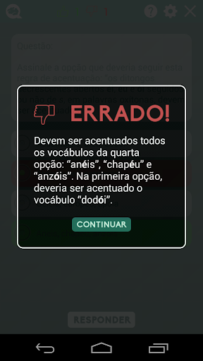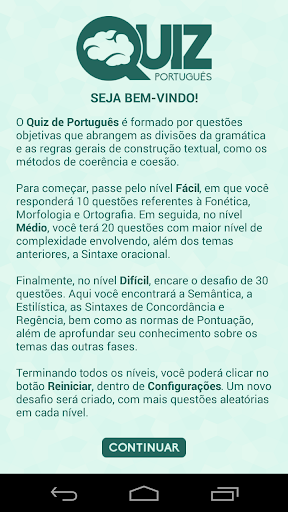 O aplicativo está dividido em três níveis de dificuldade: no Fácil você responderá 10 questões referentes à Fonética, Morfologia e Ortografia. No nível Médio você terá 20 questões com maior nível de complexidade envolvendo, além dos temas anteriores, a Sintaxe oracional.