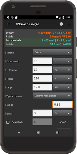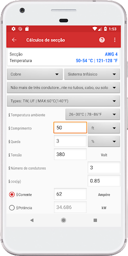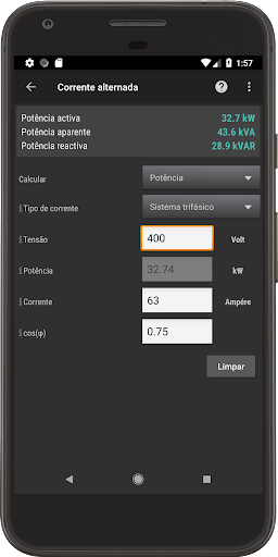 Conversão cos(φ)-sin(φ)-tg(φ)