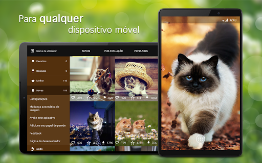 A aplicação irá abrir o novo mundo de planos de fundo com gatos e gatinhos excelentes para o seu celular android ou para o seu tablet. Os planos de fundo são verificados e escolhidos manualmente antes de entrar no catálogo, o que garante a alta qualidade de papel de parede. Novos planos de fundo com gatos para android acrescentam-se 24 horas por dia 24/7/365.