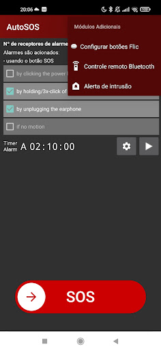 • AutoSOS alerta o recebimento de SMS à partir de sistemas de alarme anti-intrusão, mesmo que o celular esteja mudo