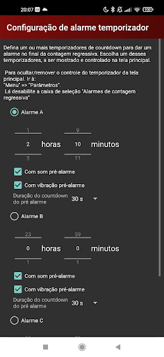 • O alarme acionado por meio das teclas de volume volta a funcionar normalmente no Android >= 13, assim como no Android < 12.