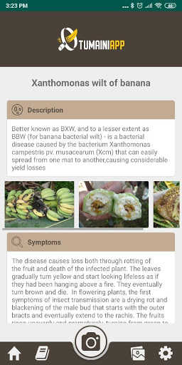 A Tumaini é uma solução baseada em inteligência artificial que permite que os agricultores de banana identifiquem e tratem doenças e pragas da planta.Este aplicativo funciona com apenas três etapas - pegue um instantâneo / imagem da planta ou de uma parte da planta, faça o upload da imagem e receba um diagnóstico específico em alguns segundos, juntamente com as medidas de controle apropriadas, a fim de reduzir as perdas de rendimento.Nosso aplicativo se apresenta em várias iluminações e resoluções.Fornecemos ferramentas fáceis e práticas para ajudar os pequenos agricultores a melhorar a produção de alimentos.
