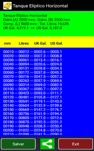 Calcular o volume e cria uma tabela. para tanques horizontais circular e elíptica.
