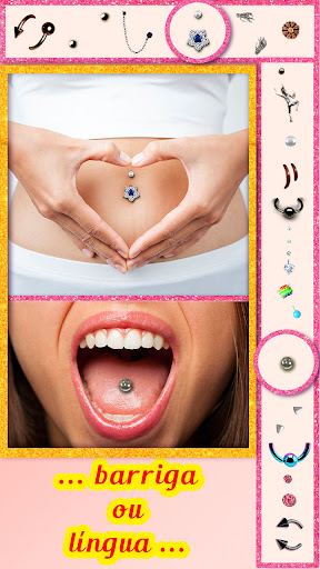 Este software de edição de fotos incrível oferece objetos agradáveis e reais piercing e permite-lhes melhorar a forma e tamanho diferente do """"a jóia do corpo"""" sua própria foto! No nosso salão de piercing podem encontrar a melhor galeria de jóias corpo!