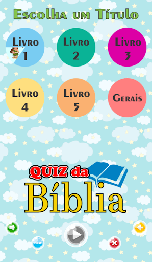 Quiz da Bíblia está dividido nos cinco primeiros Livros da Bíblia, mais um título geral, e cada um com 20 perguntas. Você pode escolher qualquer título para responder, e quando você atingir 50 pontos é liberado o botão dos seus acertos, ou seja, mostrará as questões que você acertou.
