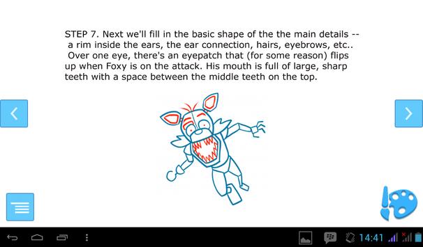 Find out How to Draw Foxy Full Body FNAF with the following simple steps. We will guide you step by step. When you use this app you will see a draw that is fun and easy, you don't have any special skills. This app is totally free for you. With this app you can coloring foxy FNAF and drawing exercise. Please download this app and thank you for using How to Draw Foxy Full Body Five Nights at Freddy's We hope that you like and rate me please..