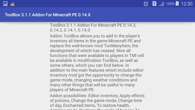 A descrição de ToolBox Addon For Minecraft PE