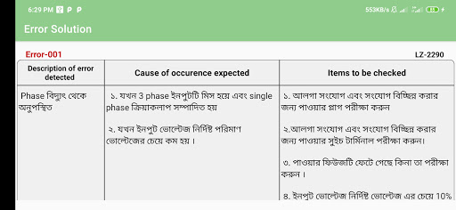In this application has been make error bangla solution through google translation. When data is connected than it's automatically converted error text to bangla formate.