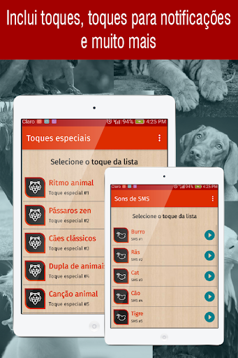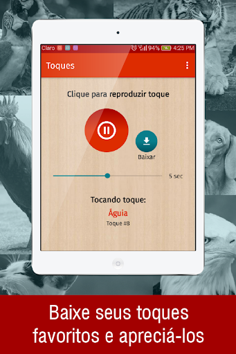 Não esqueça que você precisa de uma conexão com a internet para o uso correto do aplicativo sons de animais e para poder acessar o download de todos os toques.