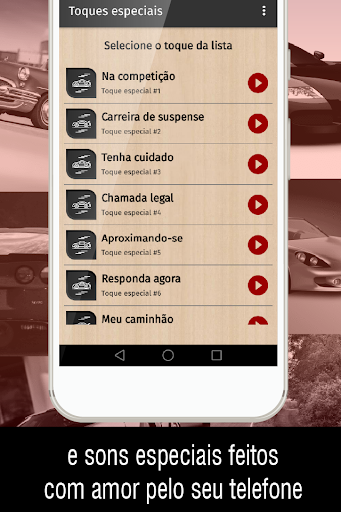 Procurando novos toques para o seu dispositivo móvel? Faça o download do novo aplicativo toques de carros para celular e personalize o som do seu dispositivo, escolhendo o que você mais gosta na grande variedade de sons de telefone gratuitos disponíveis.