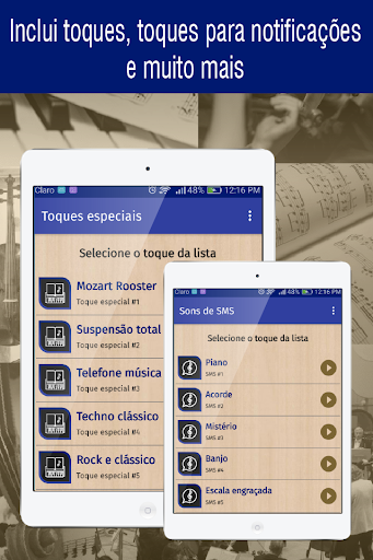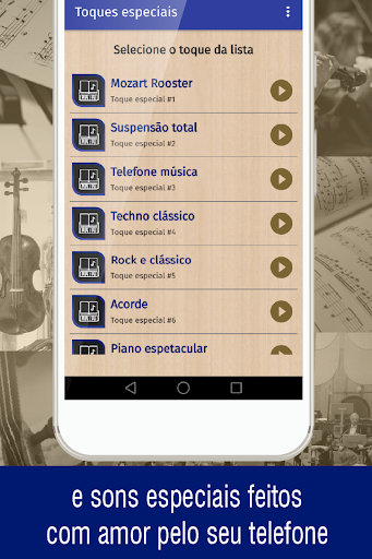 Não esqueça que você precisa de uma conexão com a internet para o uso correto do aplicativo sons musica clássica e para poder acessar o download de todos os toques gratuitos para o seu telefone celular.