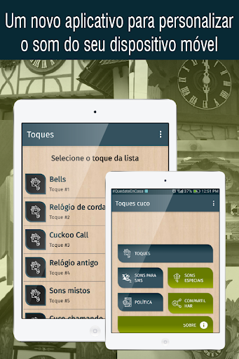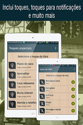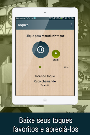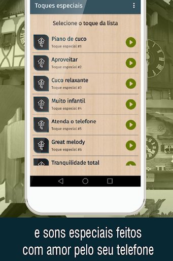 Não esqueça que você precisa de uma conexão com a internet para o uso correto do aplicativo toques de relógio cuco e para poder acessar o download de todos os toques gratuitos para o seu telefone celular.