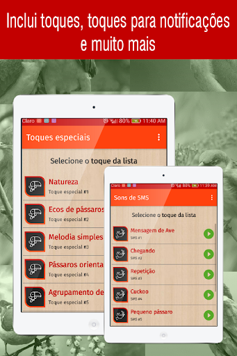 Não esqueça que você precisa de uma conexão com a internet para o uso correto do aplicativo tons de passaros e para poder acessar o download de todos os toques gratuitos para o seu telefone celular.