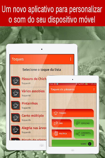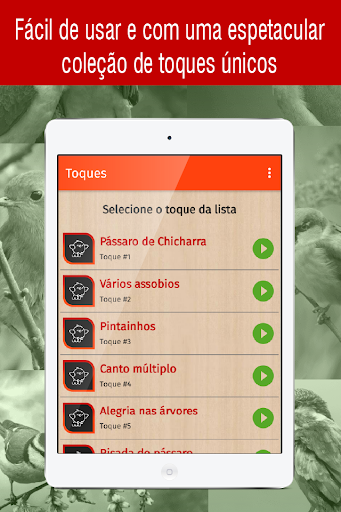 Procurando novos toques para o seu dispositivo móvel? Faça o download do novo aplicativo toques de passaros para celular e personalize o som do seu dispositivo, escolhendo o que você mais gosta na grande variedade de sons de telefone gratuitos disponíveis.