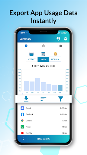 ✅Get a very good picture of how you are spending your day. Your screen time is broken into - usage time by apps.