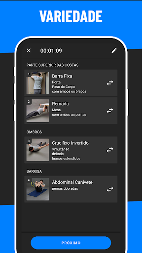 Apenas o peso corporal ou com equipamento, mas apenas os halteres. Desenha o teu plano como quiseres que seja! Você pode decidir e adaptar o seu treino em casa às suas necessidades. A adaptação individual não pára aqui. BestFit Home é a única aplicação que lhe permite personalizar ainda mais o seu treino. Troque, remova ou adicione exercícios ao seu plano de treino. Depende de si como quer personalizar o seu treino.