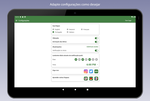 - Guarde o progresso na nuvem: O progresso é armazenado no nosso servidor quando tiver uma ligação à Internet e assim depois é sincronizado com todos os dispositivos (smartphone, tablet, …). Nunca perderá o progresso que fez, mesmo que reinstale o aplicativo.