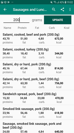 Obtenha informações nutricionais para mais de 10.000 produtos e receitas alimentares! As informações nutricionais incluem calorias, gorduras, proteínas e carboidratos.