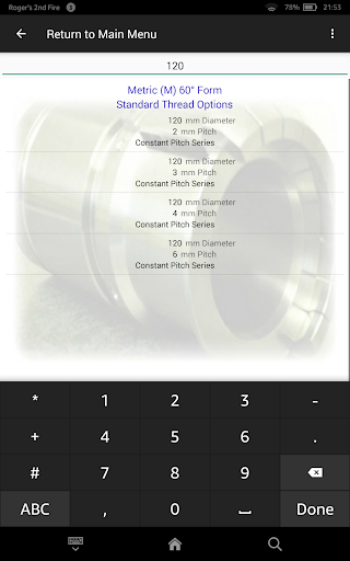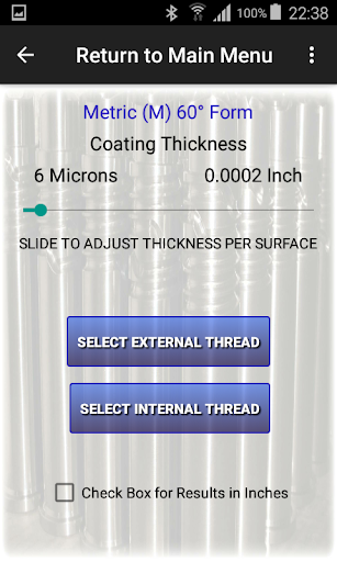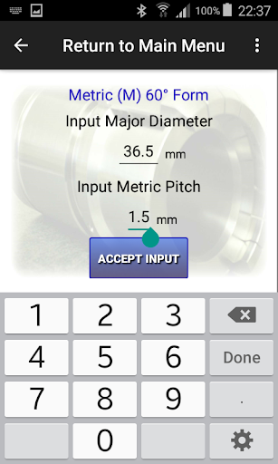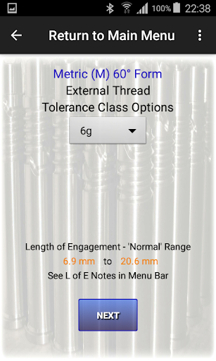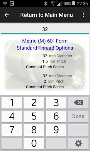 Este aplicativo de calculadora de thread fornece todos os dados necessários para máquina e medir roscas parafuso para a banda de tolerância padrão selecionada em um menu suspenso .