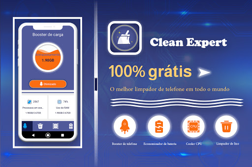 Basta baixar e desfrutar deste aplicativo de limpeza de classe mundial! Clean Expert: limpador de telefone Android! Melhore o desempenho do seu telefone Android agora!